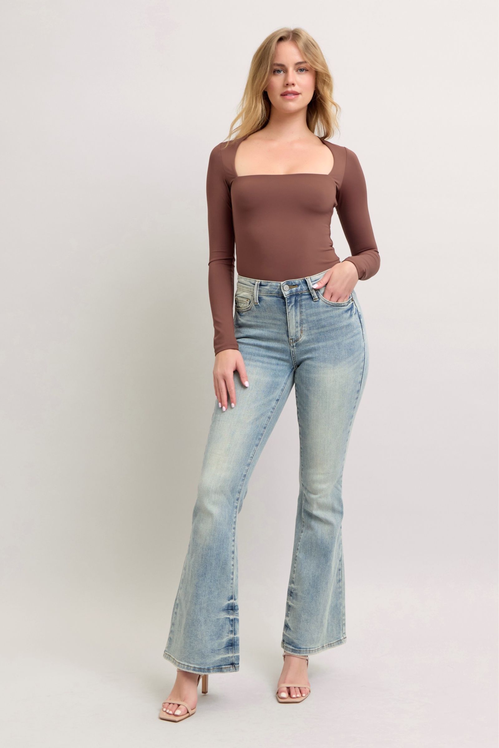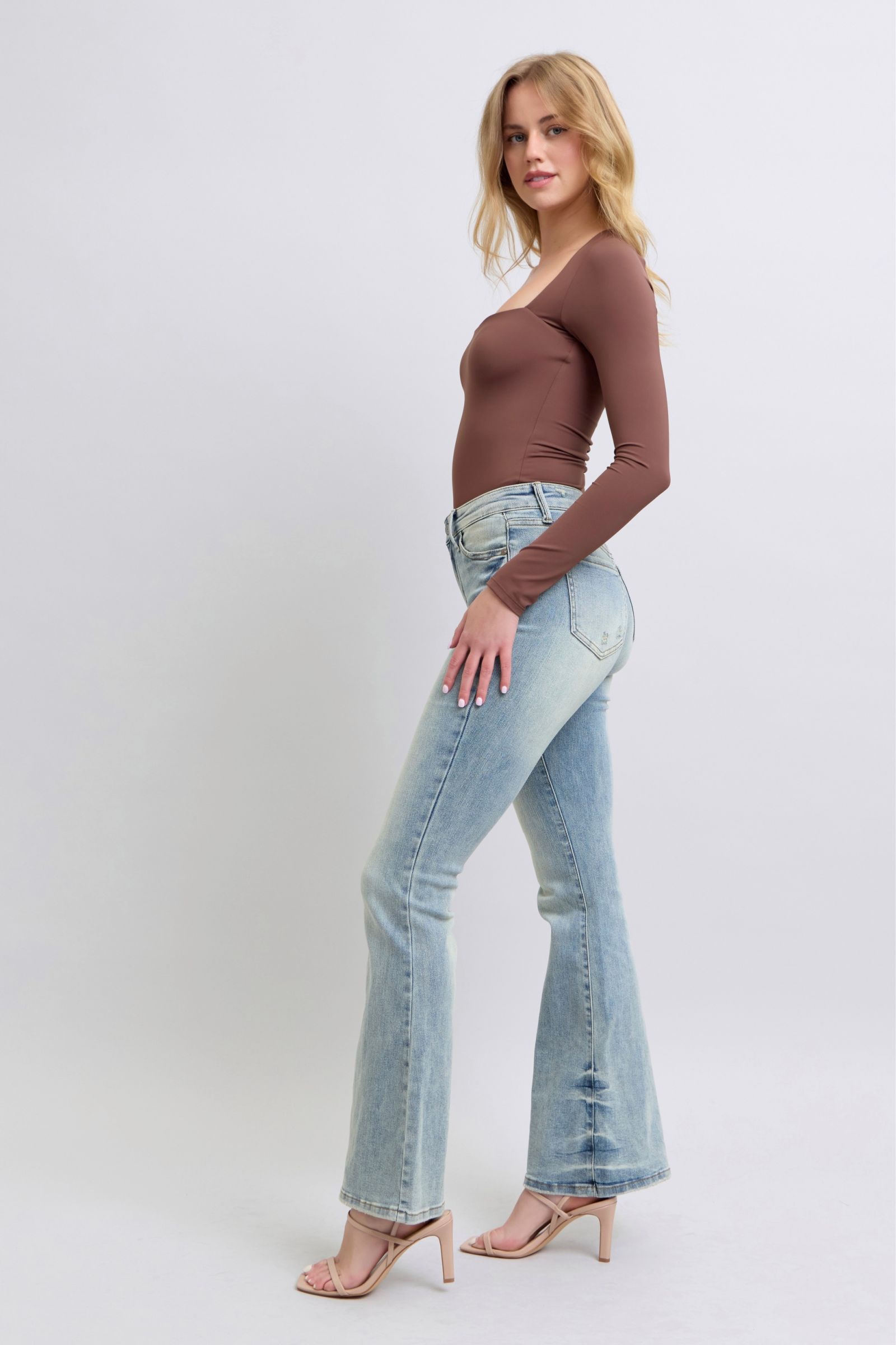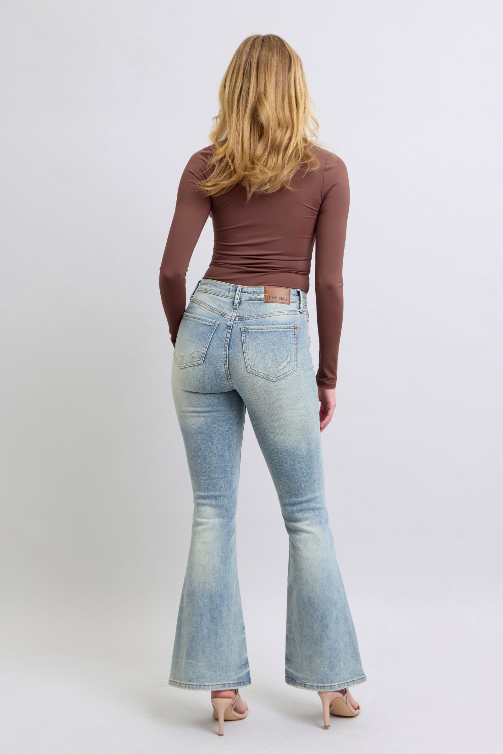 Judy Blue Mid Rise Tinted Pin Tack Detail Flare Denim