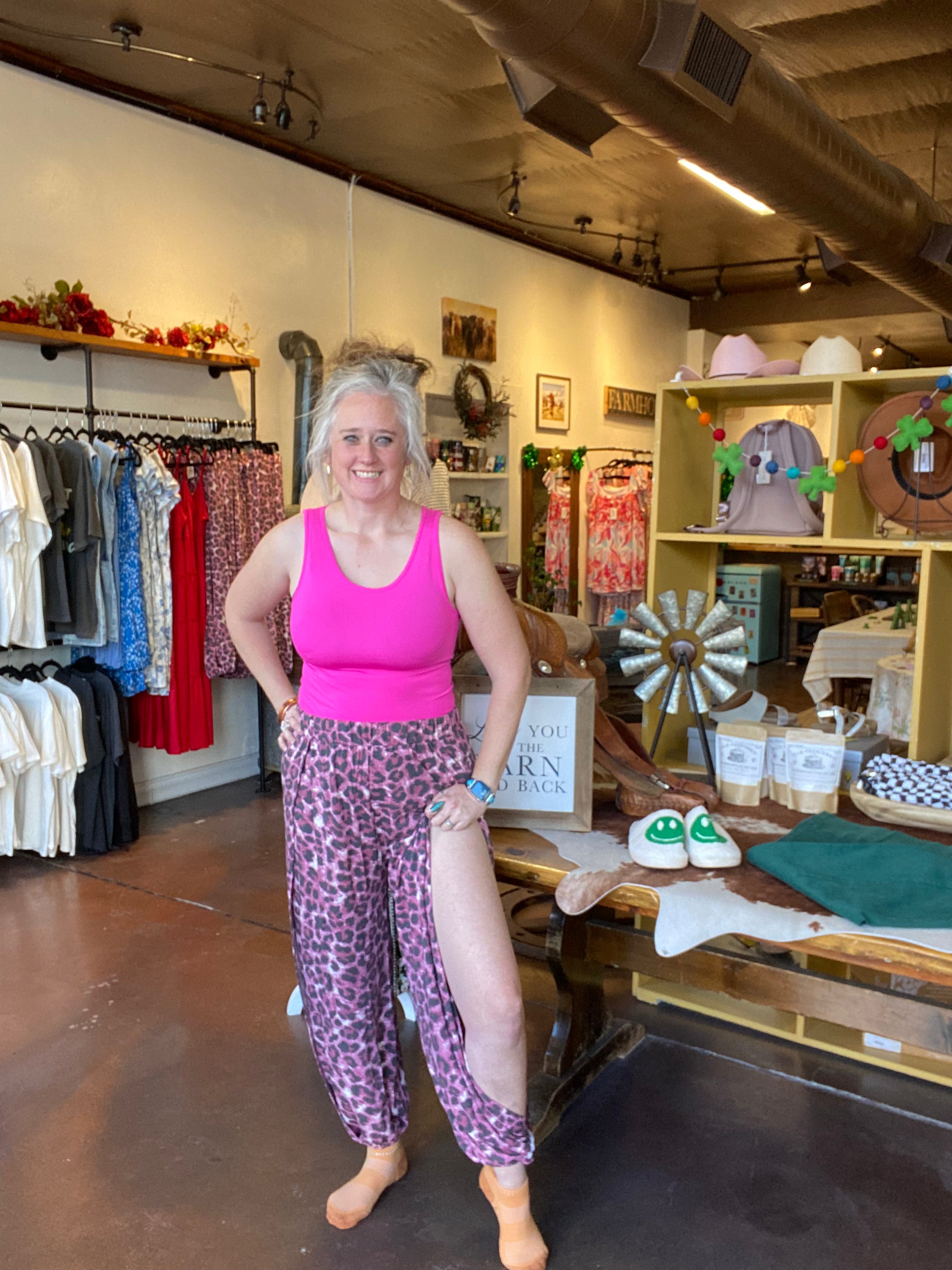 PLUS LEOPARD SPLIT SIDE PANTS