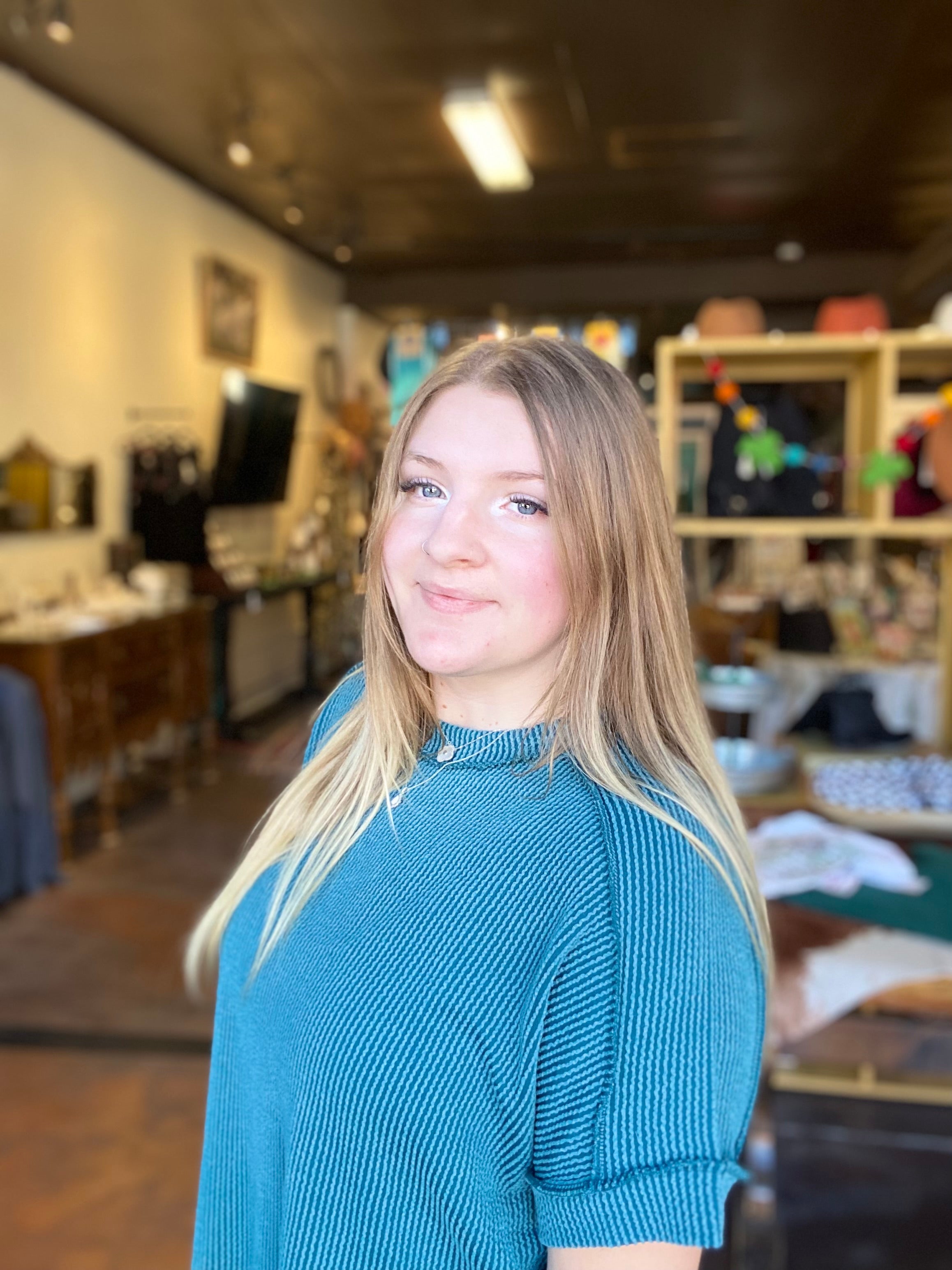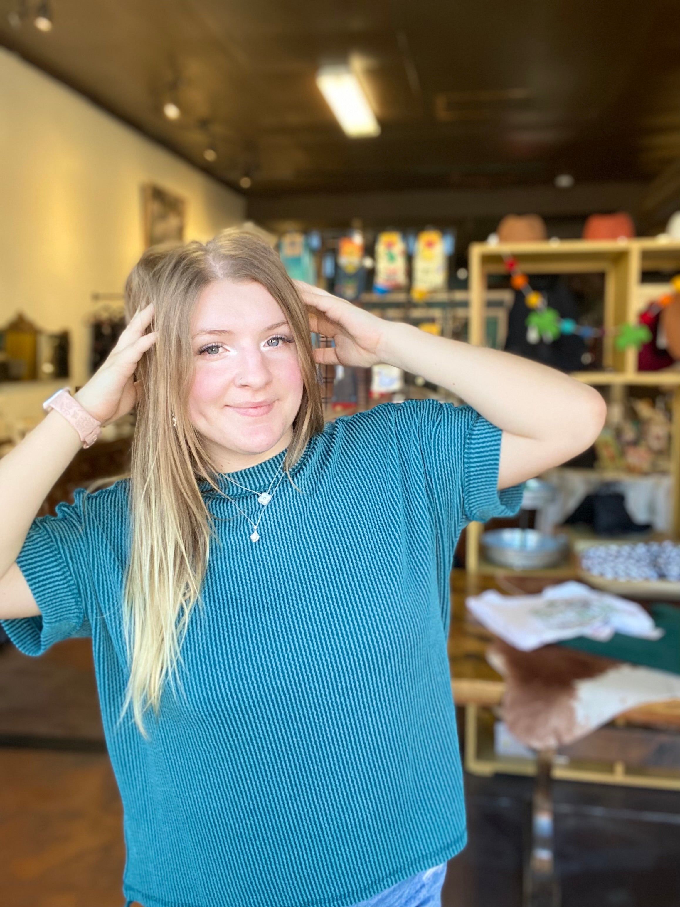 RAISED RIB CUFF SLEEVE RAW EDGE TOP